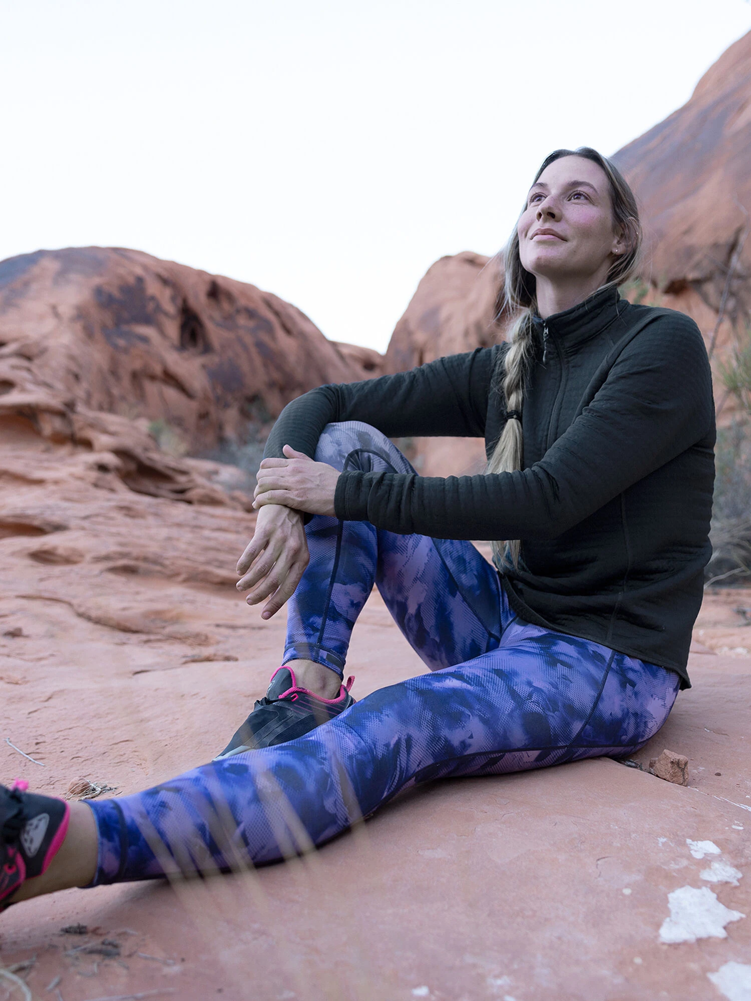 Cold temps don’t mean we turn down the heat – in fact, that’s when we really bring it. This pullover’s claim to fame is the fabrication – a soft shell made with thermal air pockets that both warm AND release warmth – so you can heat things up at altitude, carrying your own oxygen. Pairs great with our hard shell-inspired and abrasion-resistant Alpine Air Joggers (which have a smooth face, rather than a pillowed one). Thumbholes. Reflective hits. By Title Nine. XS(2), S(4-6), M(8-10), L(12-14), XL(16).